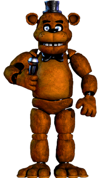 Which she tells him well do u see yourself working here for the next decade? And besides, with the missing kids and all that….which he says, wait, what missing kids? Then she goes up to a button and says, “Have u met them yet? Which Mike says, who? And she says u will like this… she presses the button, which then the lights turn on, music starts up, the curtains open up….revealing Freddy Fazbear, Foxy The Fox, Chica The Chicken and Mr. Cupcake, Bonnie The Bunny….