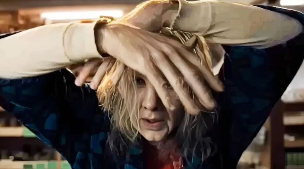 Ruth proceeds to shoot the doll in the head which causes Lee to get some head pain then she falls to the ground unconscious….I’m sorry huh? I feel like I’ve been saying that a lot in this review, but I’m serious when I’m always left with “I’m sorry huh?”.
