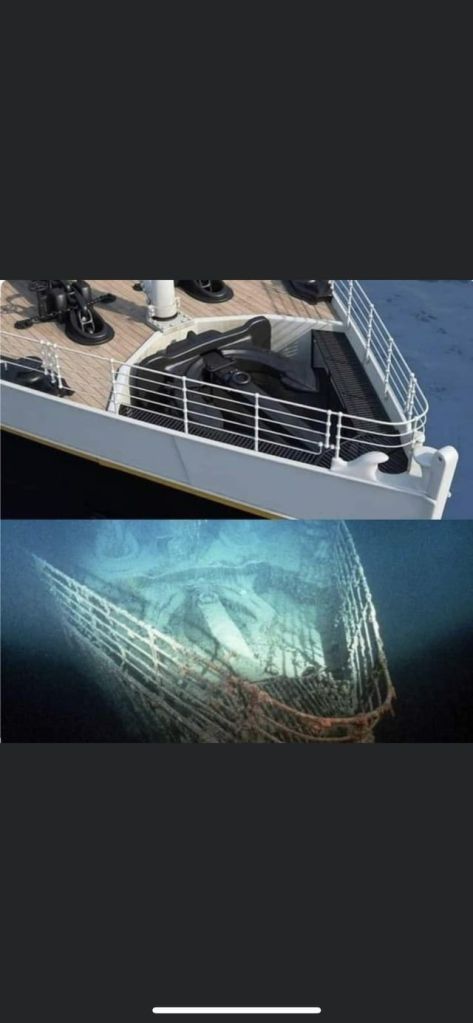 Anyways so our explorers make their way through the debris field…..but remember visiting the wreckage of the Titanic is dangerous, if the sub gets caught in any form of debris the submarine can get stuck down there….also the water pressure down there is so strong…if any hole in the submarine happens the water can and will slice the person in half..
