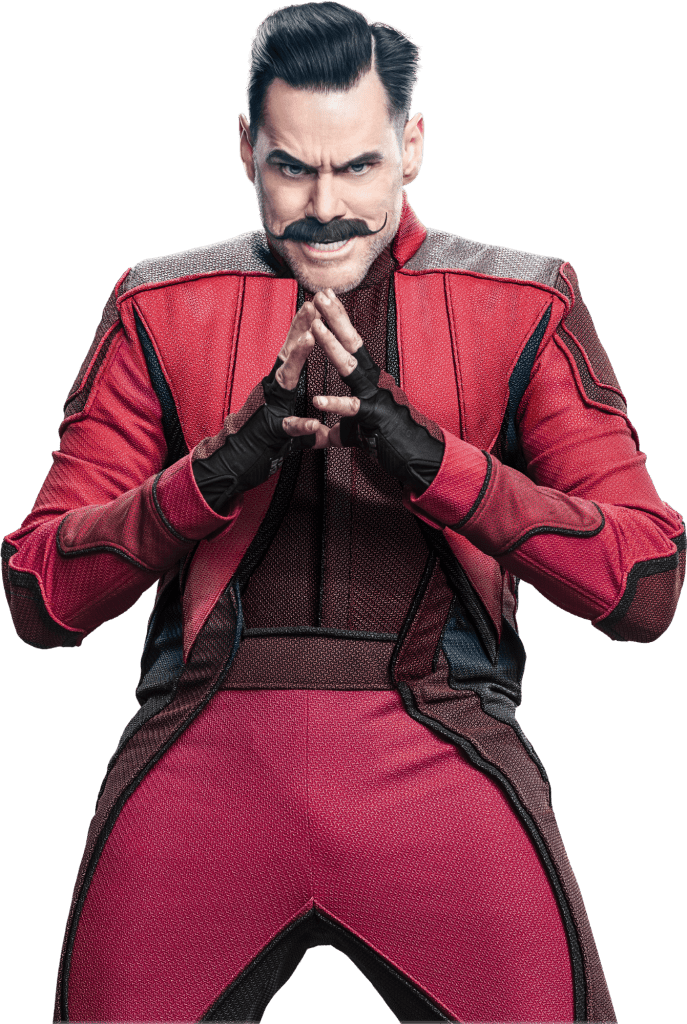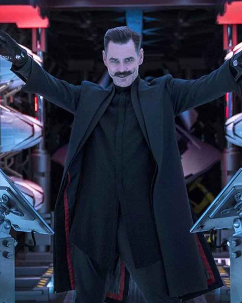 Anyway one day the government checks out a power outage that Sonic accidently caused, this gets the attention of Ivo Robotnik (played by Jim Carry), in this film he’s wearing all black, black gloves, a black trench coat, a handlebar mustache, some combed hair.